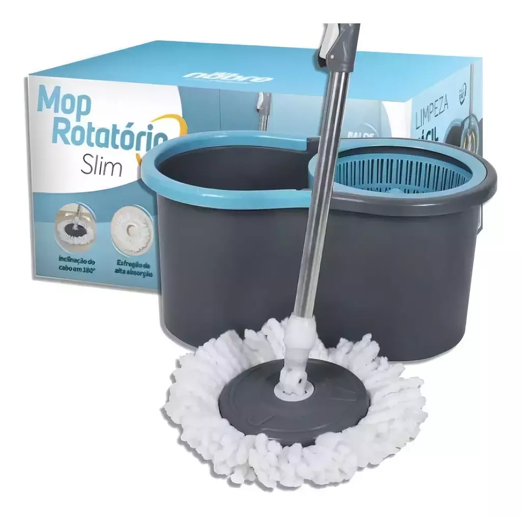 Economia de Tempo: Facilita a limpeza de pisos em menos tempo, graças ao sistema rotatório que agiliza a torção e a secagem do mop.