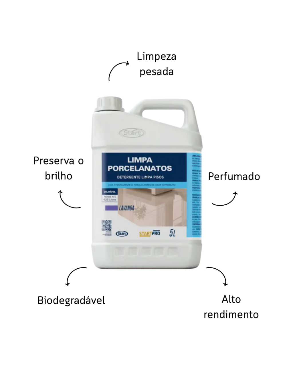 O Limpa Porcelanato StartPro foi desenvolvido para limpeza diária e pesada de pisos laváveis, especialmente porcelanatos, mas também eficaz em fórmicas, cerâmicas, granitos, azulejos, paviflex e epóxi. Remove gorduras, manchas e sujeiras com efeito rápido, preservando o brilho original e deixando um perfume suave de lavanda. O produto é biodegradável, oferecendo resultado prático e sustentável.